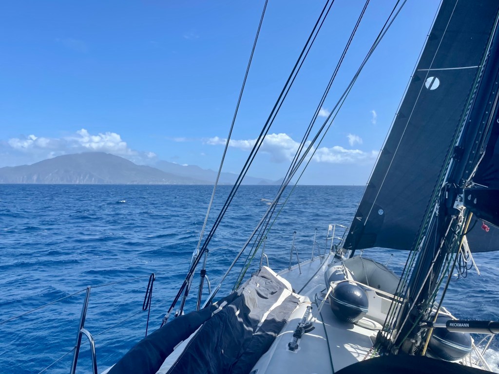 Rutten går vidare norr över mot Deshais. Vid södra udden på Bas Terre är det ibland en accelerations zon med starkare vindar. När vi passerar är det just förutsättningar för detta och vi har kraftiga vindar upp mot 40 knop förbi udden. När vi väl passerat avtar vinden och det blir fin segling utmed västra kusten av Guadeloupe.