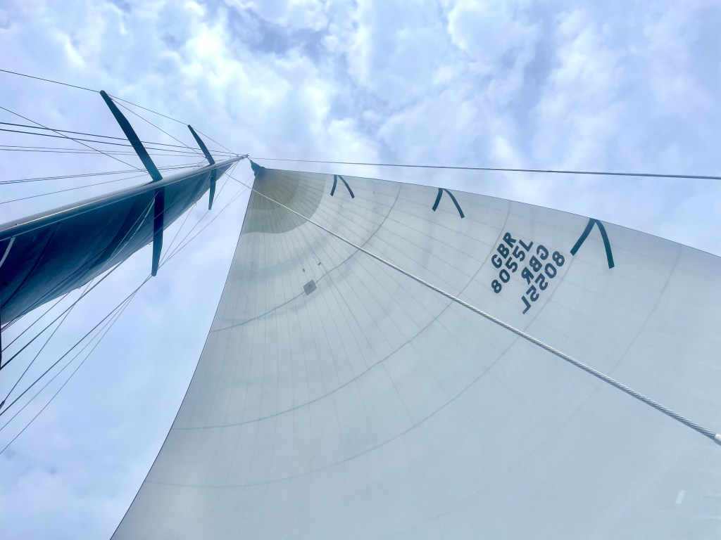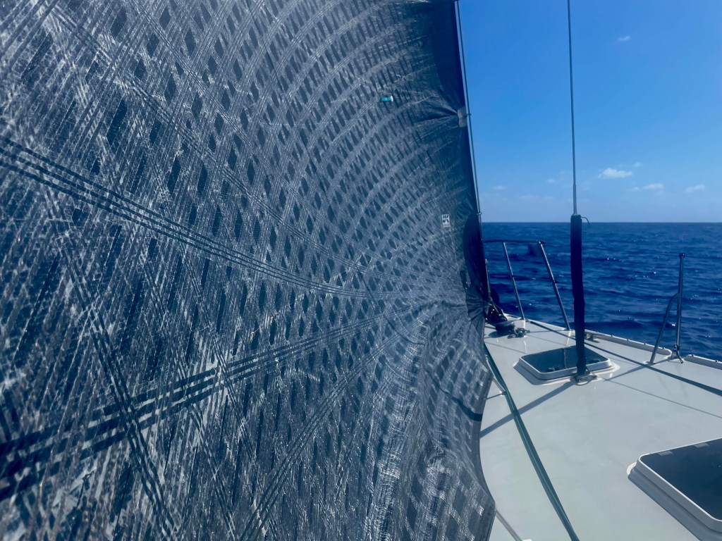 På morgonen kommer vinden tillbaka och det blåser mellan 5-10 knop TWS (True Wind Speed, Sann vind). Vi hissar full stor och Jib # 2. Vi har nu bytt från Jib # 2 Light till Jib # 2 Medium. Detta segel är i mycket gott skick och ger oss god båtfart i den lätta vinden. Jib # 2 Light har nu under närmare 15 000 – 25 000 NM blivit allt för sliten och gjort sitt. Vi beslutar därför att kassera det och använda segeltyget till reservdelar samt övriga detaljer på seglet, såsom Clam cleats segelringar etc., likaså.