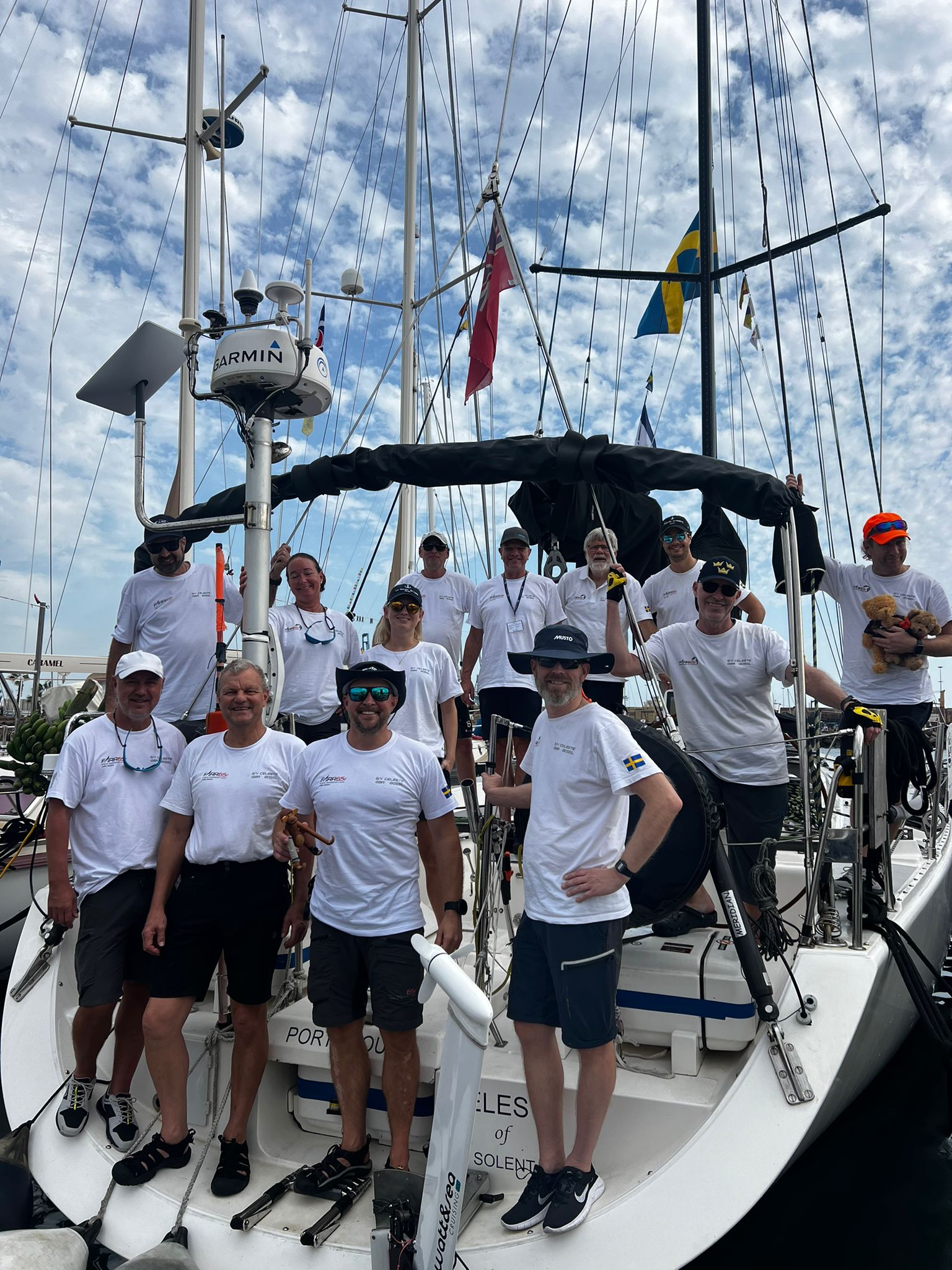 Nu är dag 10 ute på Atlanten snart slut i ARC med Farr65r S/Y Celeste of Solent. Solen har gått ner och vår nattliga följeslagare månen har kikat upp över horisonten. Den gör spinnakersegling på natten lite lättare. I dag har varit en mentalt lite utmanande dag. Vi hade ett område framför oss med lite lättare vindar och flera andra båtar har valt ett gå mer söderut (längre väg). Frågan var om vi skulle glida igenom lättvinden eller söka oss söderut. Efter en del funderande valde vi att fortsätta. Celeste har mycket segel och når hög fart tidigt. Det fällde avgörandet. Så här långt tror vi att vi gjorde rätt. Vi har kunnat gå ganska rätt på mål i farter på 7-9 knop. Vi fick dessutom ett gynnsamt vindskifte som vi såg på gribfilerna att vi kunde dra nytta av. Tidigt imorse kunde vi konstatera att vi återigen är på andra plats i vår klass och vi har lyckats hålla den hela dagen trots de lättare vindarna, men det är tack vare den duktiga besättningen. Manövrarna sitter bra. Vi har nu gjort många nedtagningar och hissningar av spinnakern och det flyter fint. Många är också duktiga vid rodret och det är inte alltid en lätt uppgift med 495 kvm segel uppe. Båtarna vi fightas med i toppen är som tidigare nämnts 74-82 fot och de borde ha seglat i från oss. I stället har vi nu seglat ikapp och förbi en 82- och en 74-fotare. Det bör innebära att vi gör bra i från oss. Sedan är det svårt att bedömma hur mindre båtar bakom oss går och som vi skall vara före i mål. Slutresultatet vet vi först i St Lucia när seglad tid skall korrigeras med handikapp samt att tiden för motor skall läggas till, vilket innebär en form av straff. Vi har hittills bara drygt 16 timmars motorgång och vi tror att de flesta har fler timmar. Nu framåt kvällen ökar vinden igen och vi styr fortsatt bra mot mål och har nu farter på 10-12 knop. Johan har briljerat i köket så det vankas oxfilé för att fira att vi passerat 1350 nm gränsen och vi är nu på den senare halvan. Ett litet ARC/Celeste quiz genomfördes under eftermiddagen och Maria vann med fina 9 poäng av 12 möjliga.