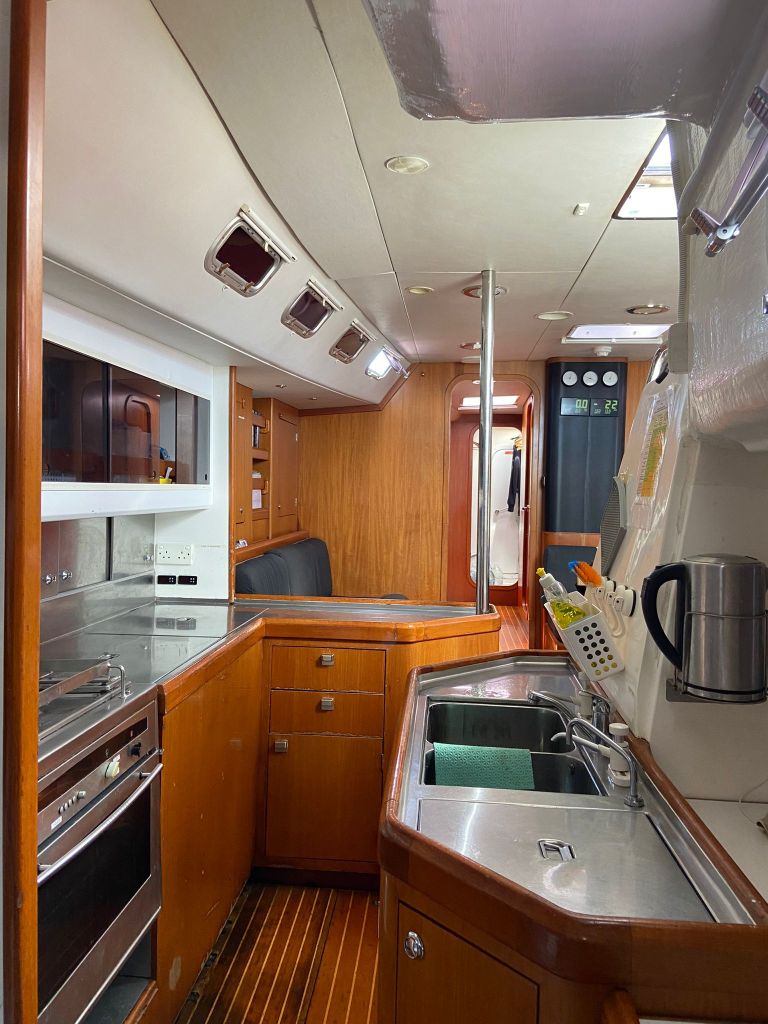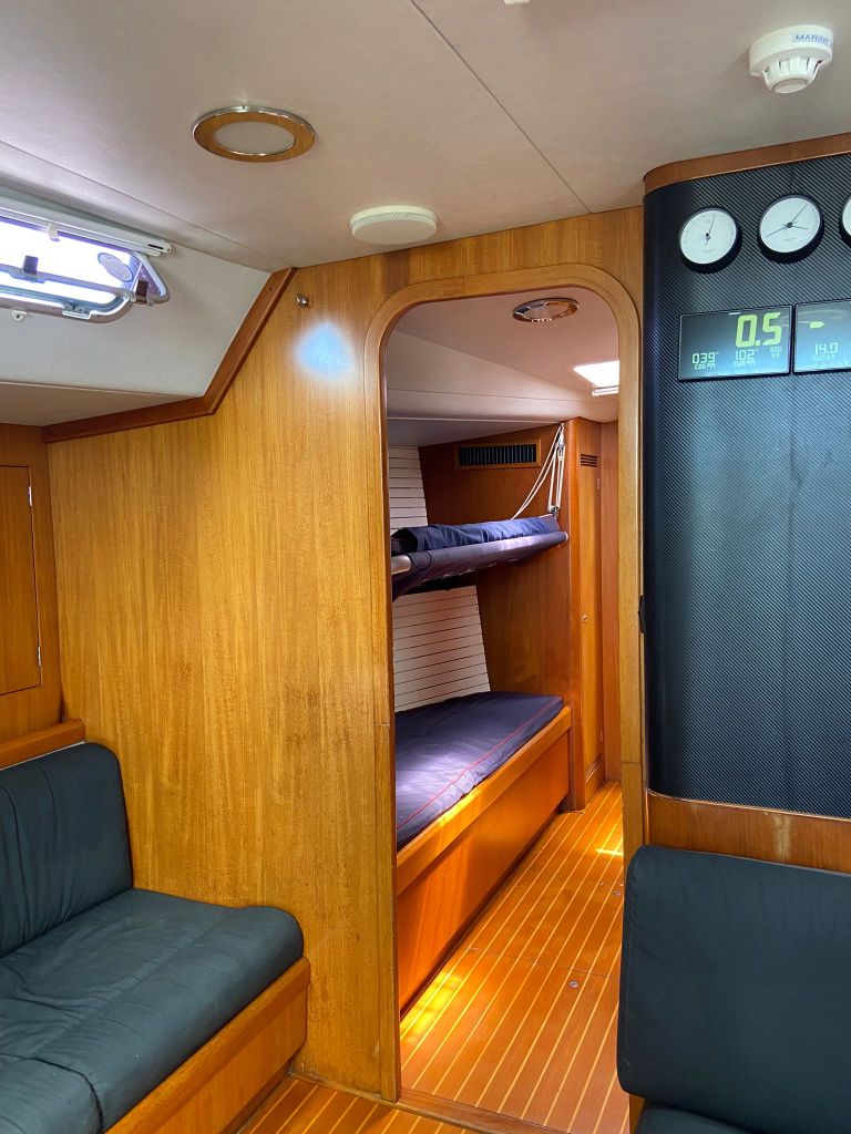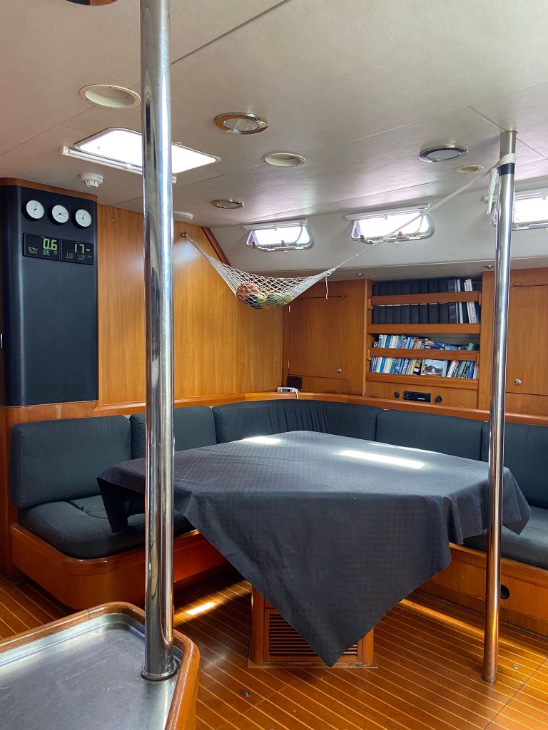 Celeste has an open and spacious cockpit with room for up to 22 people. Below deck, the saloon and kitchen are furnished in teak. In the lounge area there are sofas and a larger dining table. The kitchen is spacious and well equipped with refrigerators, freezer and oven and the conditions for cooking are very good. Celeste has a total of 16 cabins, but we are a maximum of 12 people including crew on our sailings, except during the longer crossings, such as the Atlantic, when we are 14 people on board.