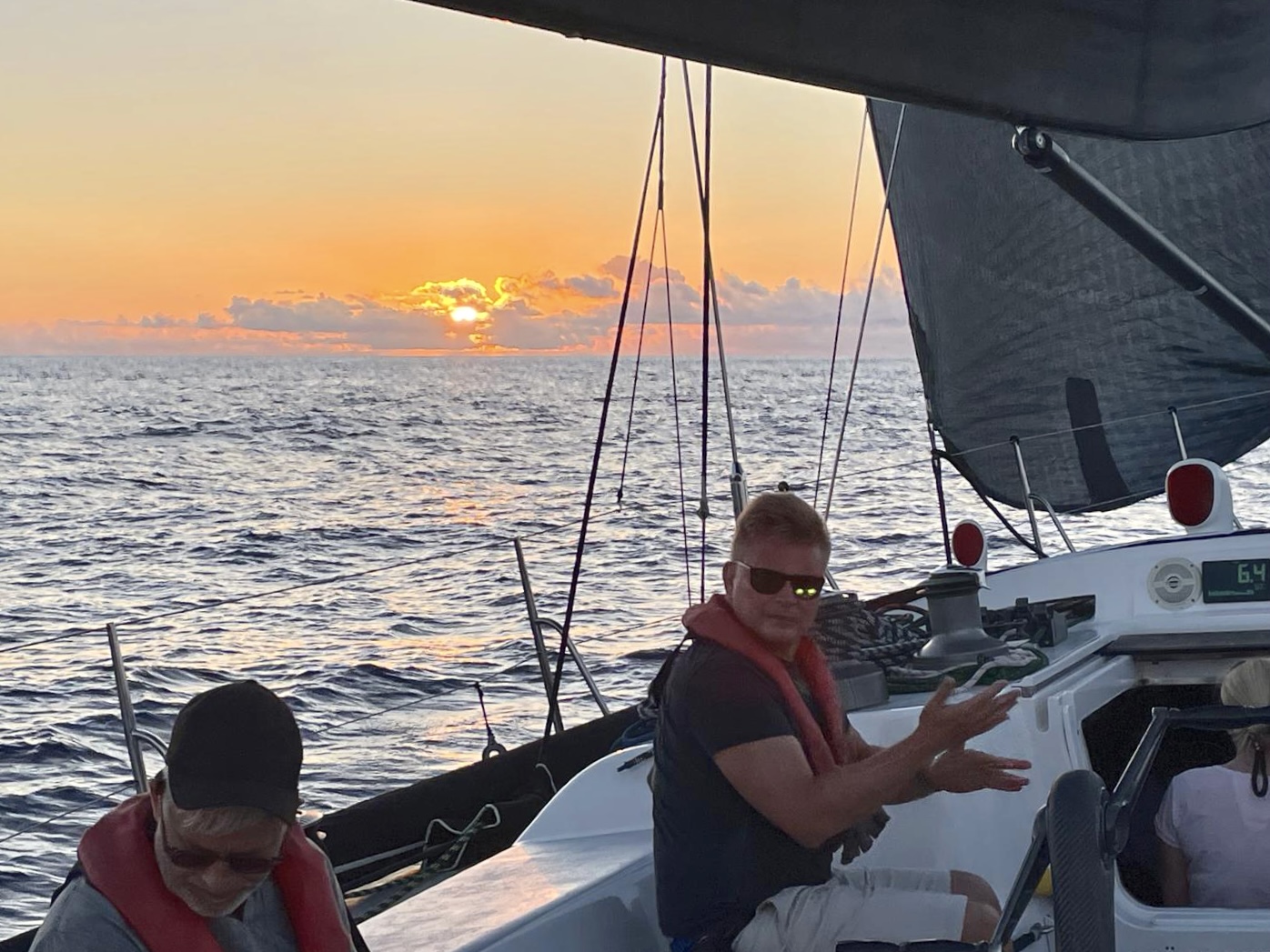 Vi samlas på avgångsdagen för gemensam planering av rutten, indelning i vaktlag och proviantering. Vi har en genomgång av båten och ni har tid att bekanta er med den på egen hand. På kvällen äter vi en gemensam middag på långfärdsseglarna älskade Peter’s Café. Morgonen därpå har vi säkerhetsgeneomgång tankar vatten och sen är det dags att lägga loss. Kanske stannar vi redan efter ett par timmar och badar i Atlantens azurblå vatten på flera tusen meter i djup. Vi planerar att besöka San Jorge och Terceira innan vi avslutar seglingen på Sao Miguel, hur länge vi stannar på de olika öarna beror givetvis på väder och vind samt besättningens gemensamma önskemål.